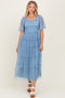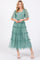Details A mesh maxi dress featuring a ruffled tiered skirt, a smocked top, short flutter sleeves and a square neckline. Content + Care