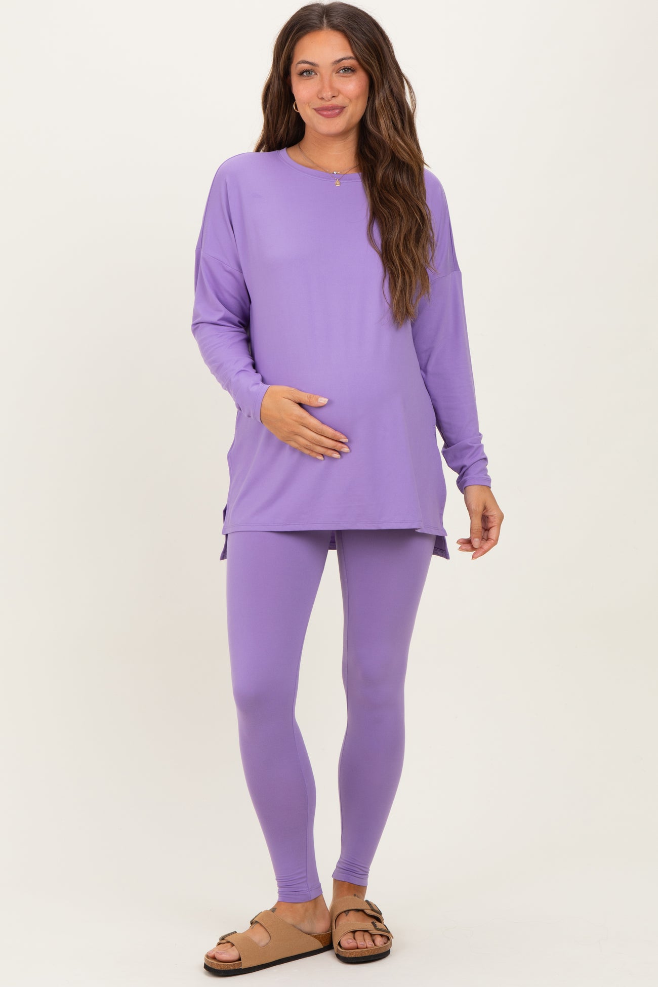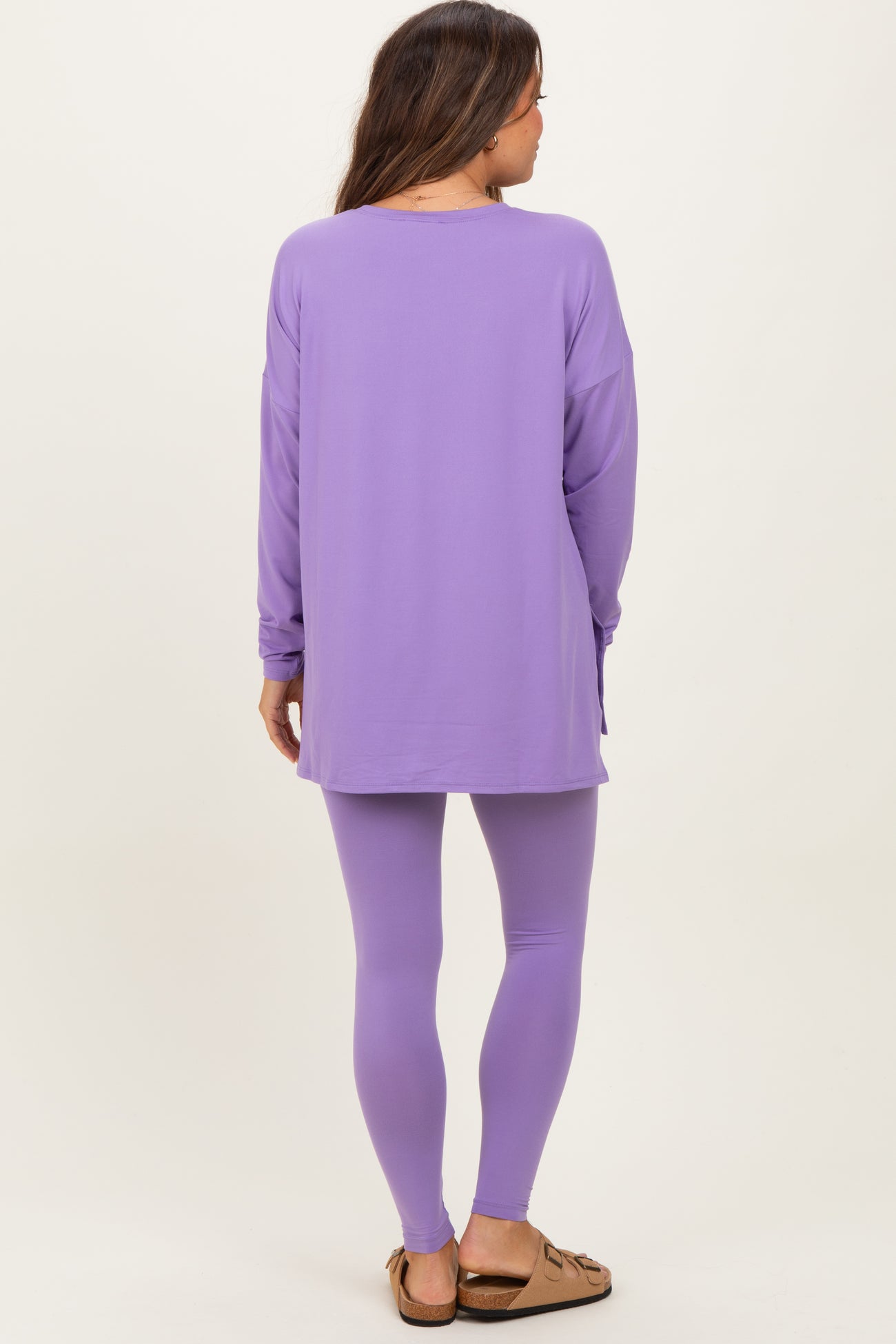 Lavender Brushed Knit Oversized Top and Legging Maternity Set