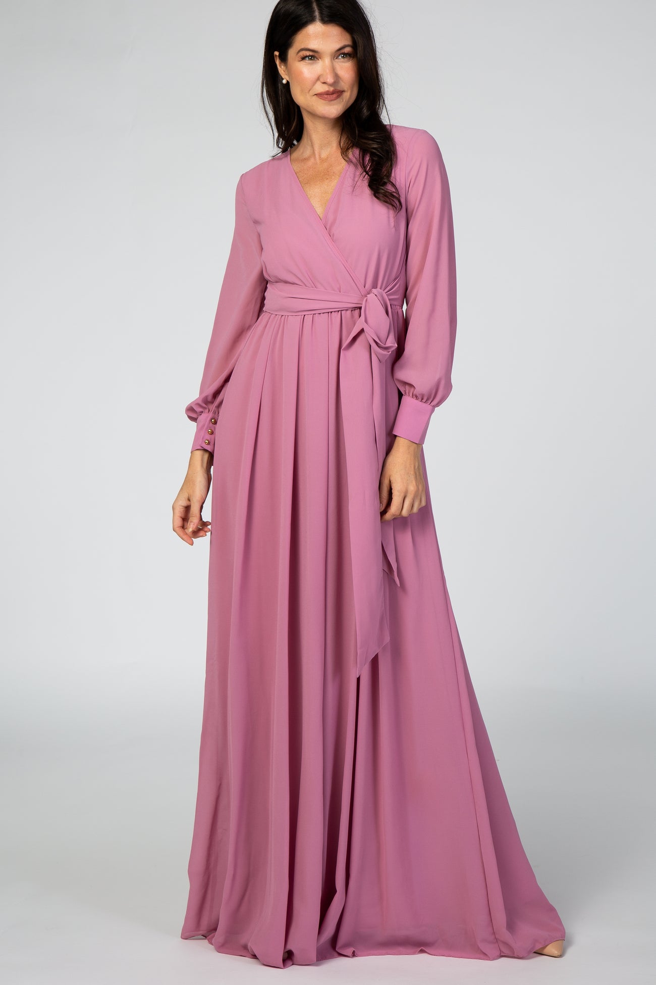Lavender Chiffon Long Sleeve Maxi Dress