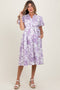 Lavender Floral Print Belted Midi Dress