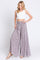 A floral pant with a smocked elastic waist, side pockets, and wide pant legs.