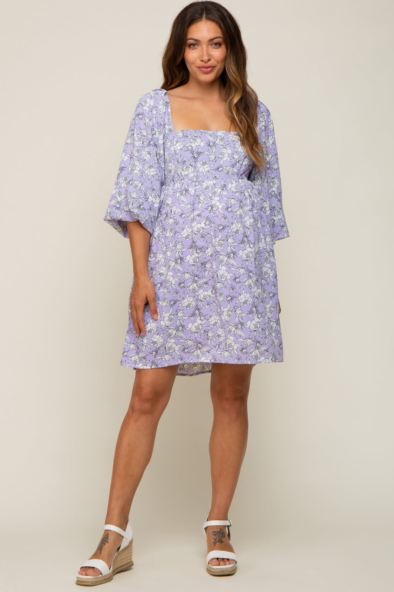 Lavender Floral Square Neck Back Cut Out Tie Maternity Dress