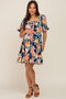 Lavender Flower Print Square Neck And Puff Sleeve Dress