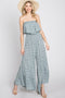 A plaid printed midi dress featuring adjustable cami straps, ruffle accent smocked bust with tie detail and ruffle hemline.