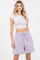 A solid pair of shorts with an elastic waistband with drawstring, raw hem accents and hem. Pocketed.