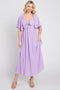 Lavender Textured Dot Front Tie Ruffle Sleeve Maternity Midi Dress