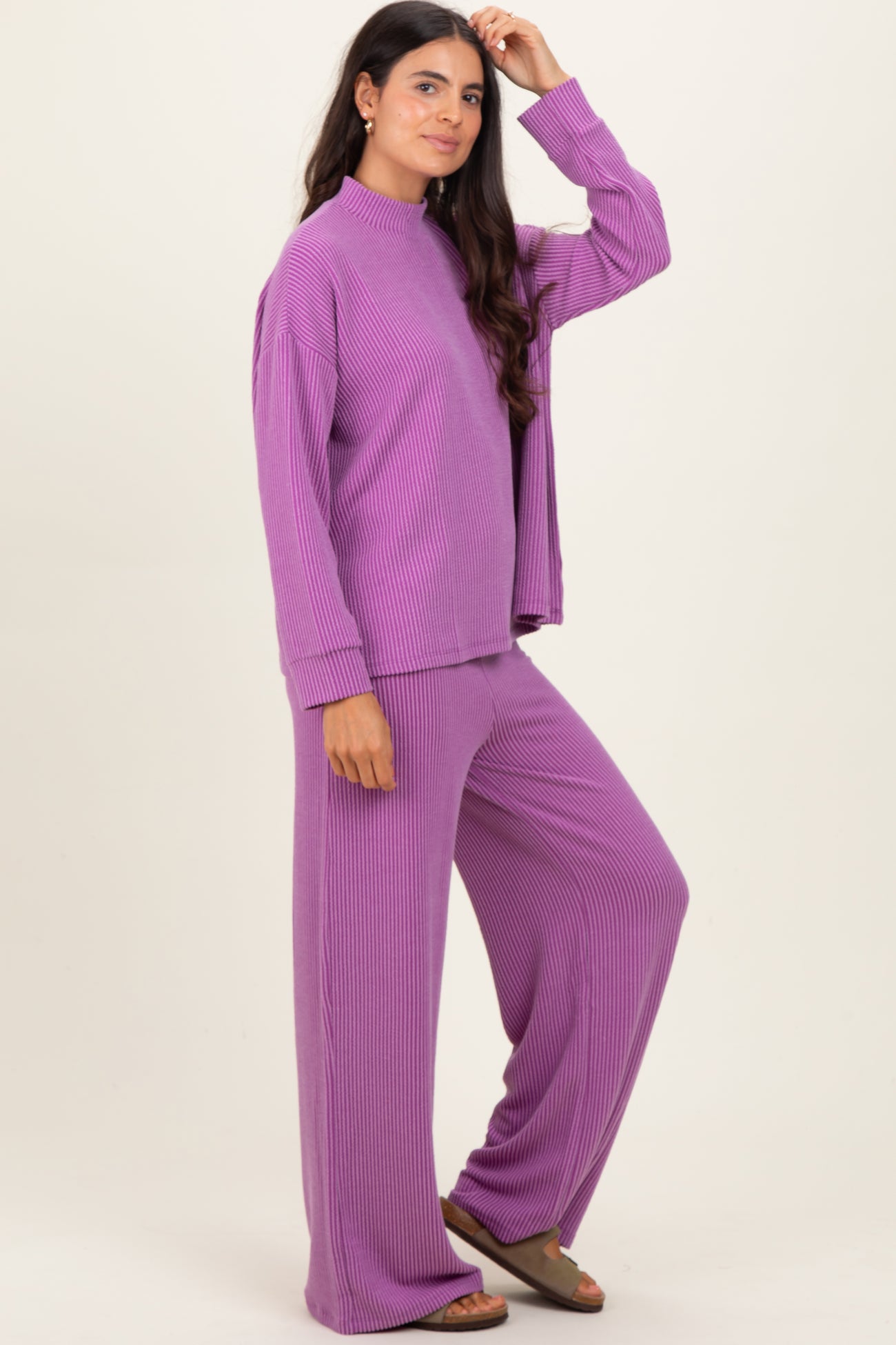 Lavender Textured Rib Mock Neck Long Sleeve Pants Set