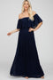 Details A chiffon pleated maternity maxi dress featuring an off shoulder neckline, an empire waist double lined. Content + Care