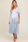 Light Blue Contrast Top Tiered Maternity Midi Dress