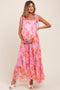 Light Blue Cotton Floral Square Neck Sleeveless Maxi Dress