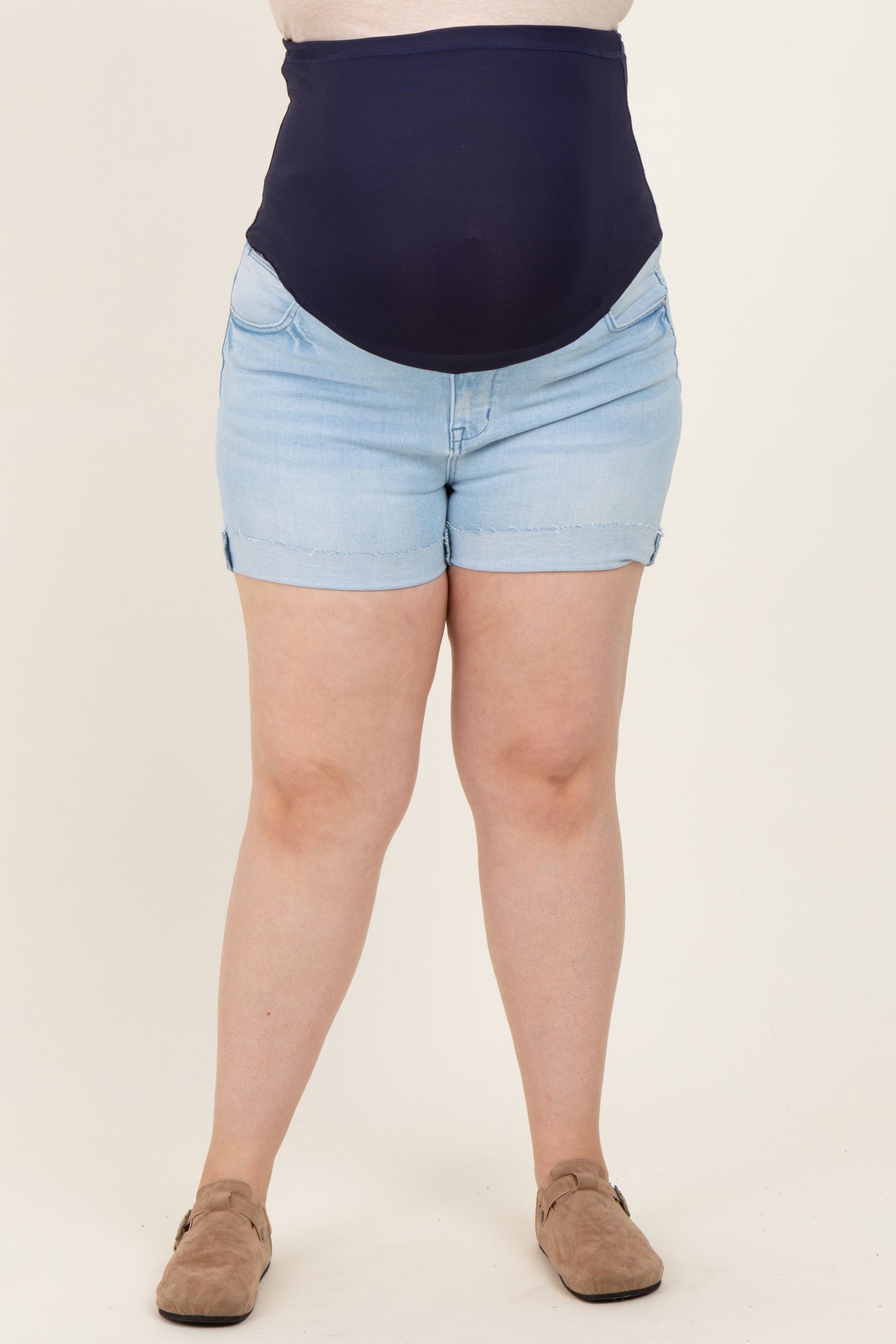 Light Blue Cuffed Raw Hem Maternity Plus Denim Shorts