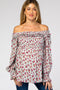 A floral print long sleeve top in an off shoulder style. Features smocked bust and puff ruffle sleeves.