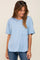Light Blue Front Pocket Raw Edge Trim Short Sleeve Top