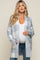 A plaid print knit maternity cardigan with a shawl neckline and open front. Features two pockets.
