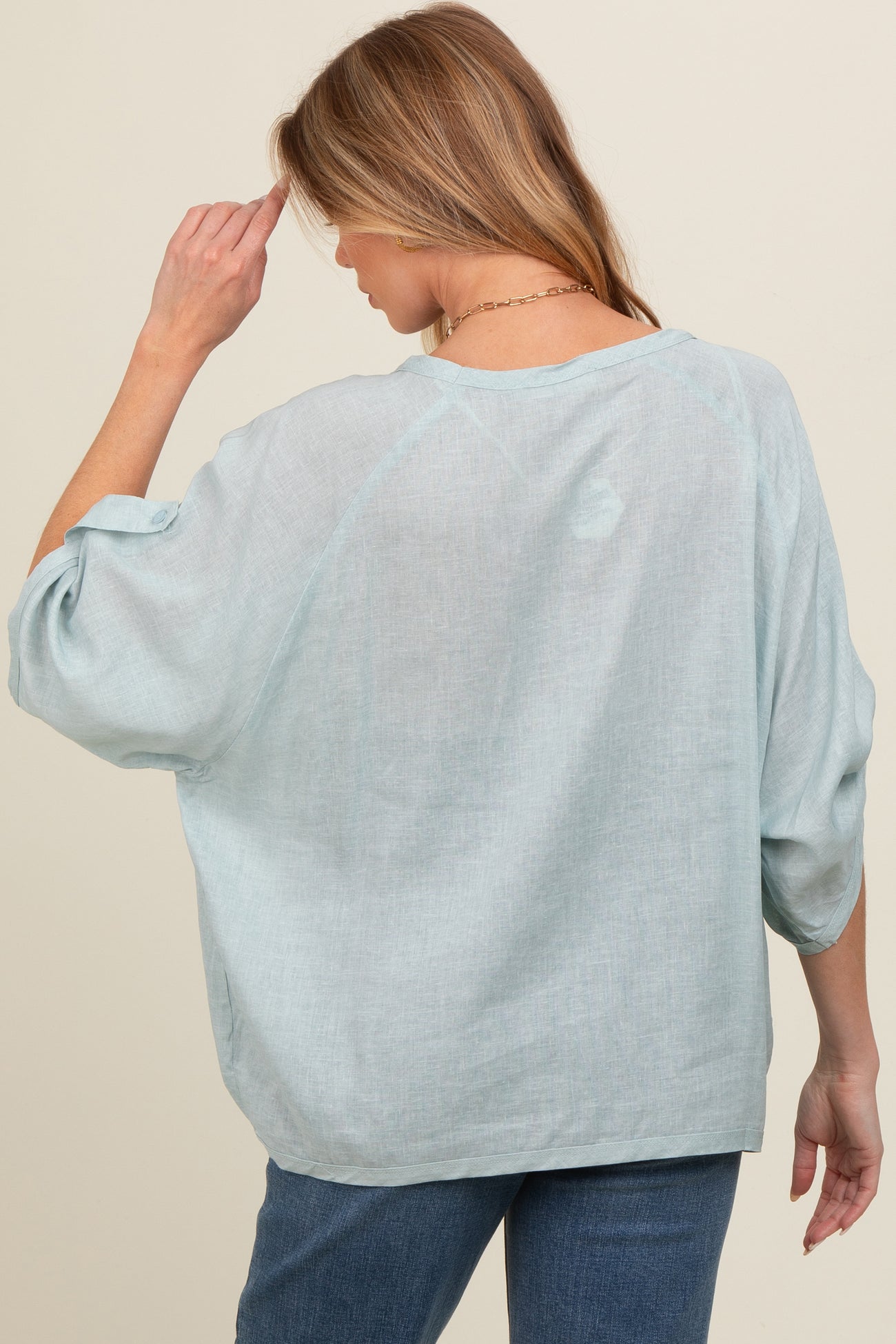 Light Blue Rolled Cuff Short Sleeve Maternity Top