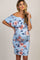 Light Blue Rose Print Ruffle Fitted Maternity Dress