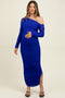 Light Blue Ruched Mesh One Shoulder Long Sleeve Maternity Maxi Dress