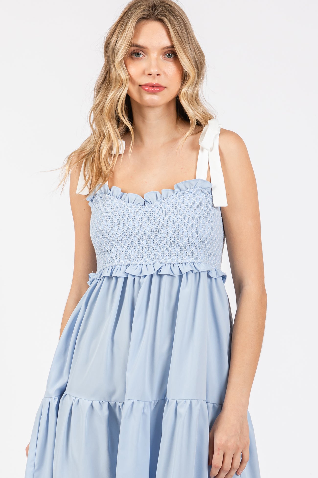 Light Blue Sleeveless Tiered Colorblock Strap Maxi Dress