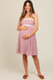 Light Blue Smocked Drawstring Halter Side Cutout Maternity Jumpsuit