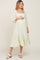 Light Green Striped 3/4 Cinched Sleeve Tiered Maternity Midi Dress
