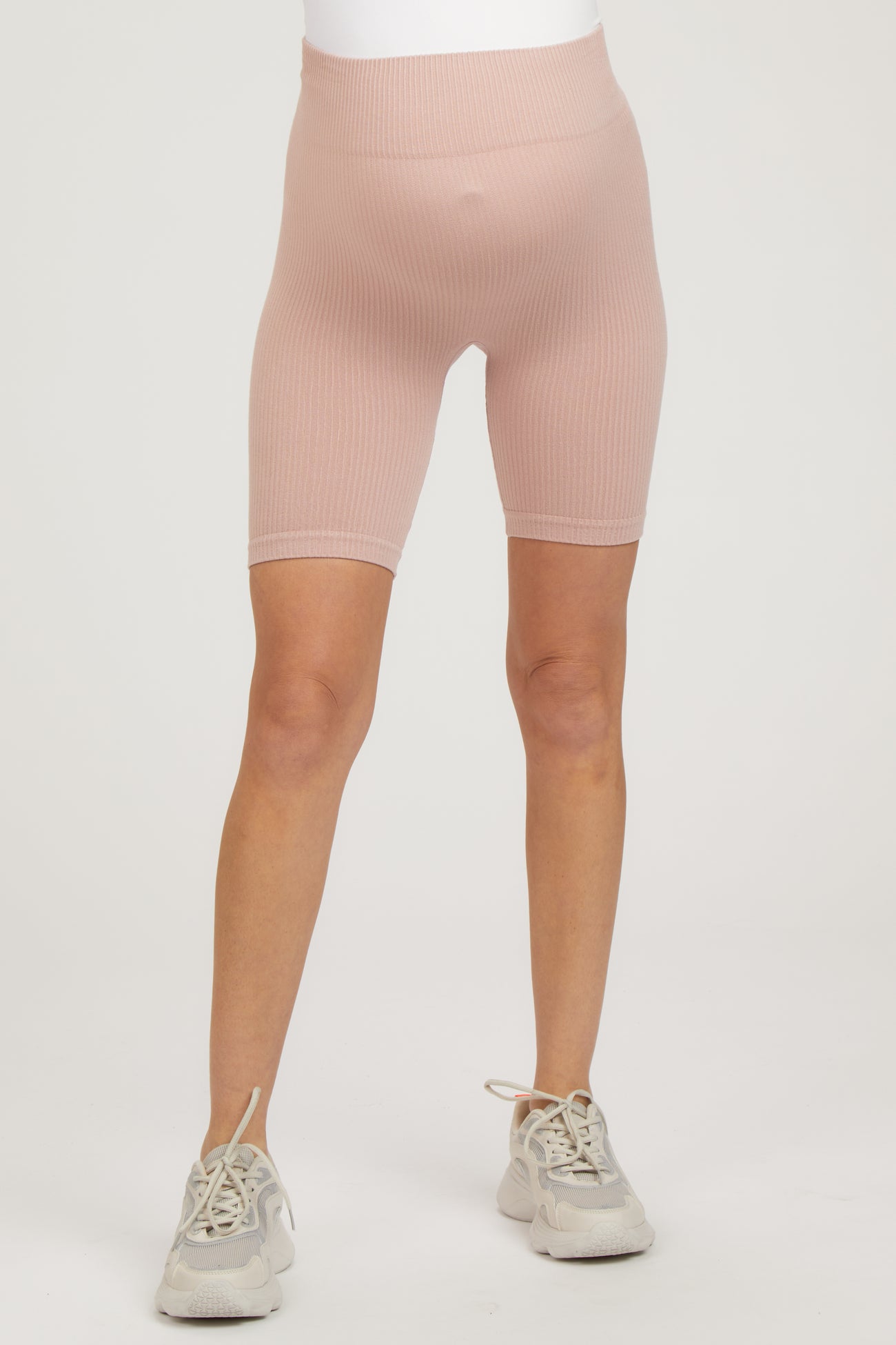 Light Mauve Rib Knit Maternity Biker Shorts