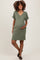 Light Olive Brushed Rolled Short Sleeve V-Neck Maternity Dress