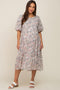 Light Olive Floral Chiffon Puff Short Sleeve Tiered Midi Dress