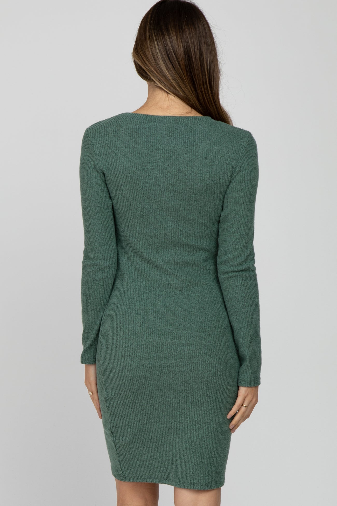 Light Olive Knit Long Sleeve Maternity Dress