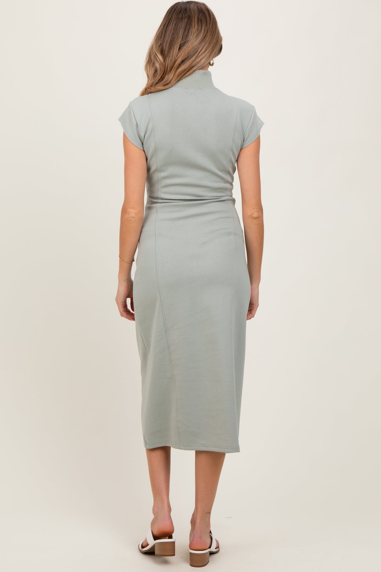 Light Olive Mock Neck Short Sleeve Maternity Midi Dress