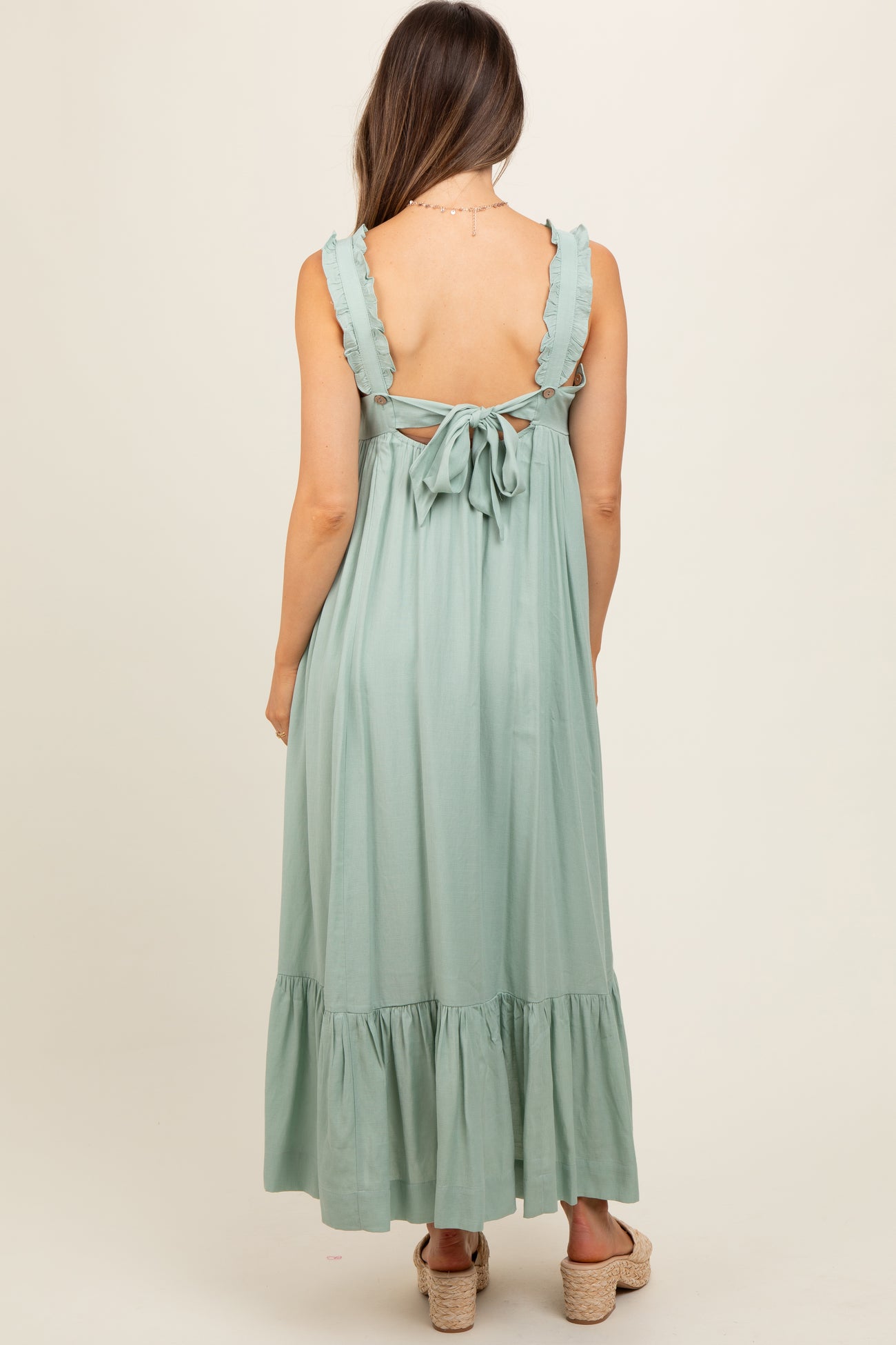Light Olive Pinafore Cutout Maternity Midi Dress