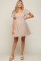 Light Olive Plaid Square Neck Short Puff Sleeve Maternity Dress