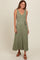 Light Olive Pleated V-Neck Waist Tie Sweater Maxi Dress