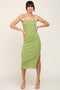 Light Olive Ribbed Knit Side Slit Maternity Midi Dress