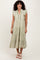 Light Olive Scallop Detail Tiered Midi Dress