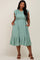 Light Olive Smocked Layered Ruffle Flutter Sleeve Plus Midi Dress