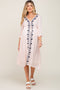 Light Pink Floral Embroidered 3/4 Sleeve Midi Dress