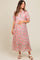 Light Pink Floral Front Tie Button Up Maternity Maxi Dress