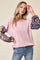 Elevate your casual wardrobe with this Light Pink Floral Ribbed Knit Colorblock Long Sleeve Top. Crafted from soft, breathable ribbed knit fabric, this top offers all-day comfort with a relaxed fit. The delicate light pink body pairs beautifully with bold colorblock floral sleeves, adding a trendy boho twist to a classic silhouette. Featuring a round neckline and voluminous balloon sleeves with elastic cuffs, it’s perfect for layering or wearing on its own. Style it with your favorite jeans or skirts for an effortlessly chic look that transitions from day to night. Perfect for cool weather, this versatile top is a must-have for any fashion-forward closet.
