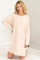A basic long sleeve shirt dress with a round neckline, relaxed shoulder, and two side slits.