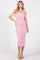 Light Pink Off Shoulder Sleeveless Ruched Mesh Midi Dress