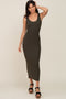 A pleated collared midi dress featuring a button down front, waist tie, short puff sleeves and a front slit.