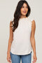Details A ribbed top with a ruffled mock neckline, flounce sleeves, and a rounded hemline. Content + Care