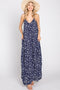 A solid hued maxi dress featuring a ruffled waist, short sleeves, side pockets and a rounded neckline.