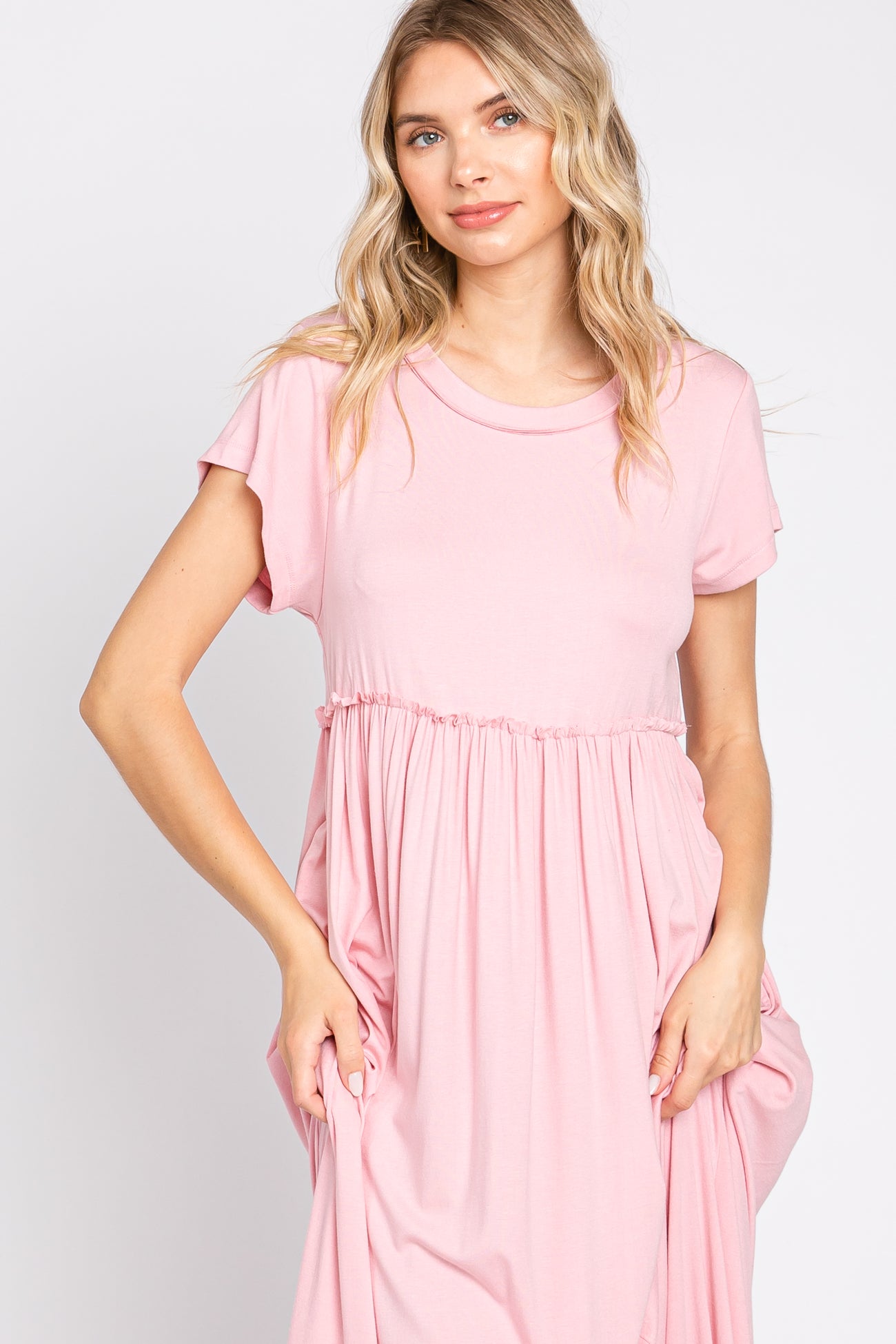 Light Pink Short Sleeve Pocketed Maxi Dress