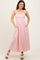 Light Pink Smocked Embroidered Bust Textured Midi Dress