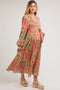 A maternity midi dress featuring a square neckline, a smocked bodice, a tulle ruffle tiered A-line skirt and double lining.