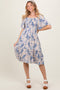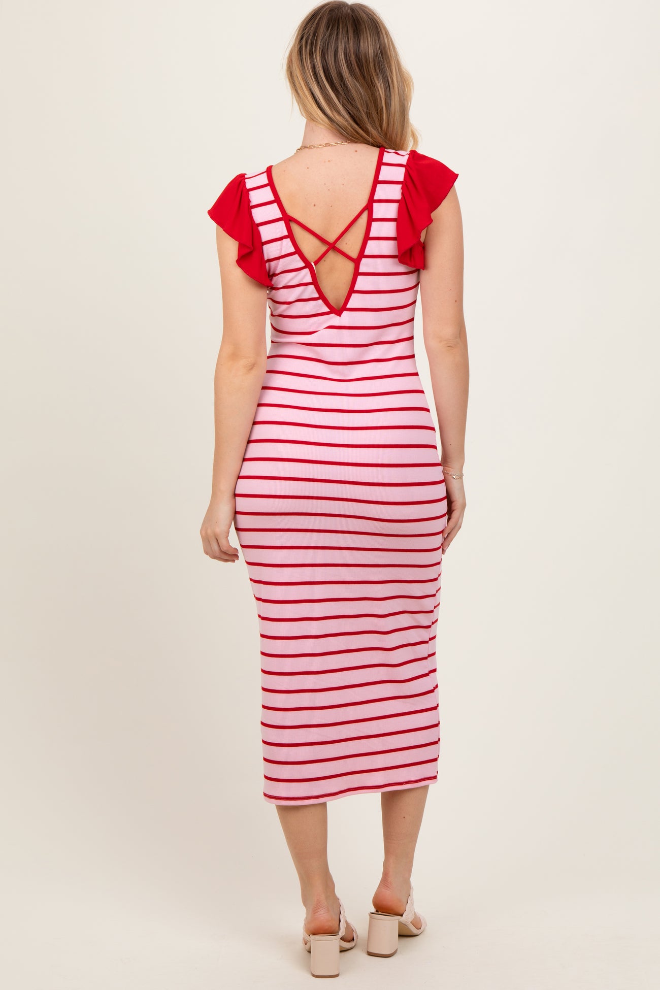 Light Pink Striped Ribbed Ruffle Sleeve Open Back Midi Dress