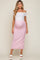 A textured maternity midi skirt featuring a back slit and an elastic waistband.