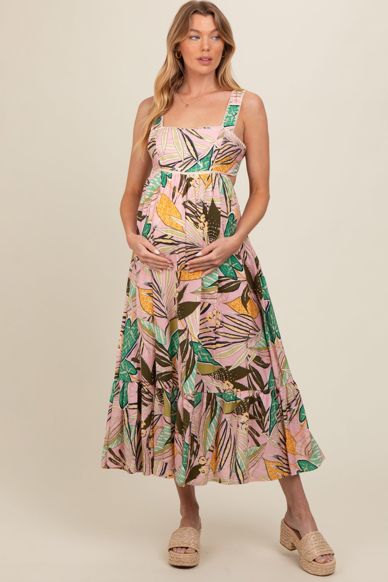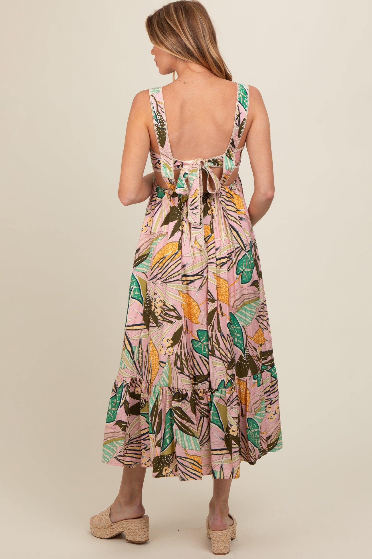 Light Pink Tropical Back Tie Cutout Maternity Maxi Dress