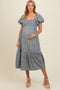 Light Taupe Floral Puffed Sleeve Maternity Midi Dress